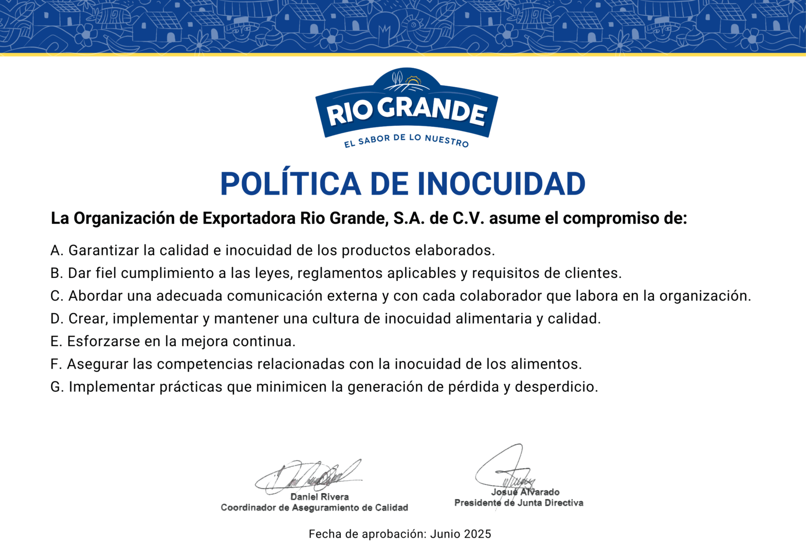 Nuestro compromiso es exportar alimentos latinos con el mejor SABOR Y CALIDAD para nuestros consumidores, hemos reestructurado EXPORTADORA RIO GRANDE para mejorar los procesos de calidad.
