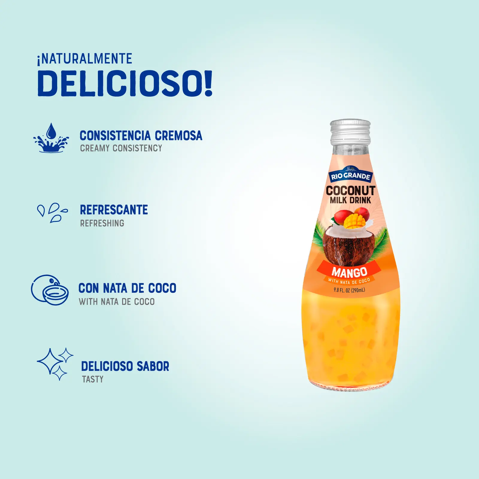 Rio Grande Foods Mango Coconut Milk Drink with Nata | 24 Pack 290mL | Leche de Coco Mango | Creamy Tropical Coconut Beverage with Real Mango