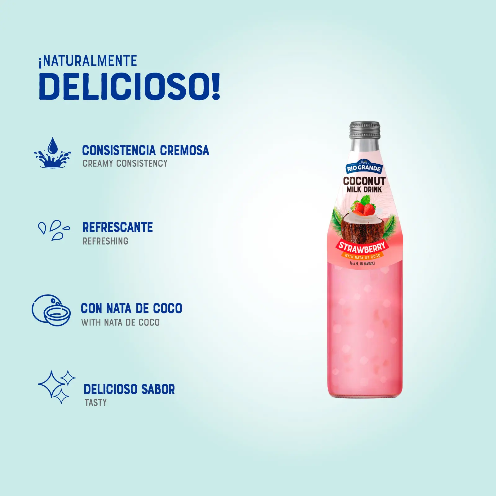 Rio Grande Foods Strawberry Coconut Milk Drink with Nata | 24 Cans 16.6 oz | Leche de Coco Fresa | Creamy Tropical Coconut Beverage Large Size
