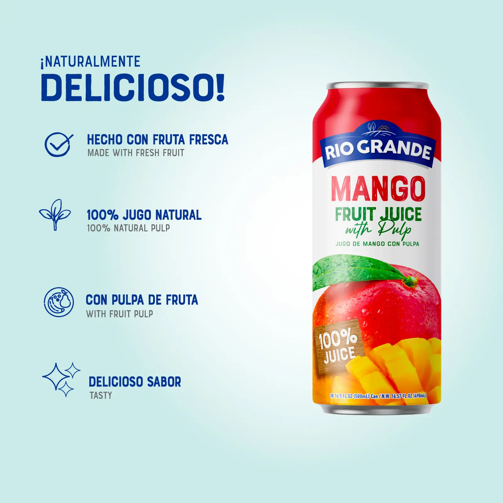 Rio Grande Foods Mango Juice with Pulp 100% Natural | 24 Pack 16.9 oz | Authentic Latin Tropical Mango Fruit Juice | Pure Fruit No Sugar Added